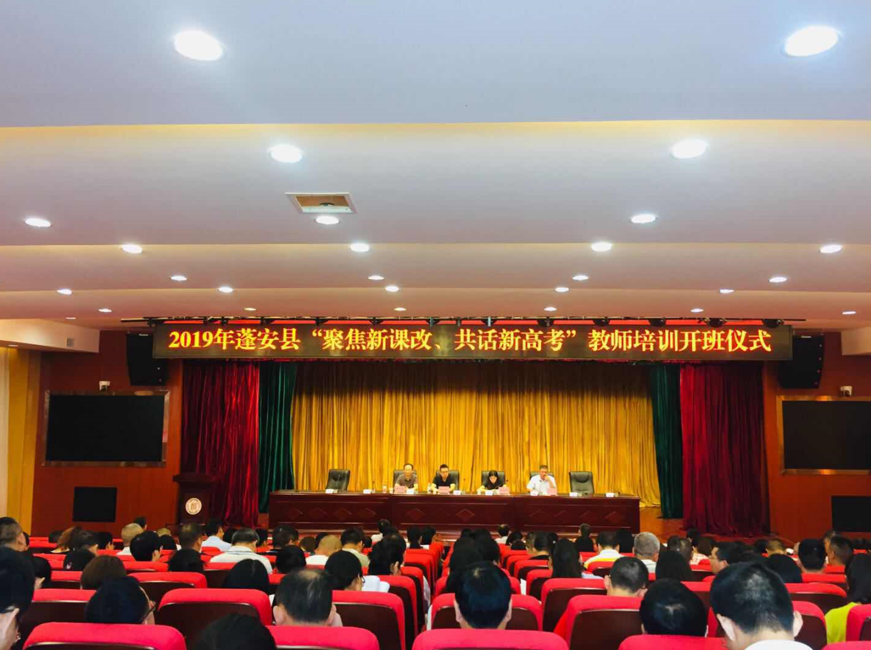 7月9日上午,四川师范大学基础教育集团承办的蓬安县“聚焦新课改、共话新高考”教师培训开班仪式在蓬安县第二中学相如大讲堂顺利举行。蓬安县教育科技和体育局党委委员、副局长邓玉泉,县委教育工委专职副书记唐钰舒,集团督学潘亦宁以及蓬安县高中语文、数学、英语学科骨干教师共计240人参加了此次开班仪式。开班仪式由县委教育工委专职副书记唐钰舒主持。
