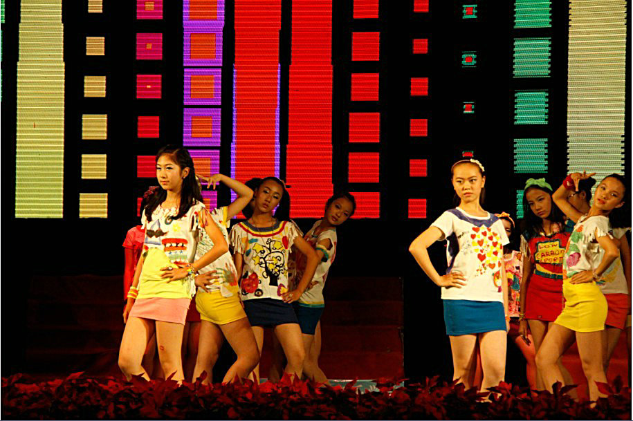 本次汇演在学校领导的重视关心下,由初2015级全体师生精心准备,倾注大量心血,节目丰富多彩,别具一格。管乐合奏《龙舌兰》热情欢快,激情飞扬;啦啦操动感十足;灯笼秀让大家看到了狮山少年墨笔下的中国美,孩子们自己设计的服装和五彩面具走秀,大胆创新极赋时代感;黑暗中的手影舞神秘而充满魅力;歌伴舞《爱的人间》绿裙轻舞飞扬,童声婉转悠扬;现代舞的女孩魅力动人,男孩帅气十足;《跳弦》更是刮起了一阵绚丽的民族风,把活动推入了一个小高潮。这些精彩纷呈的节目充分展示了狮山少年的活力与风采!